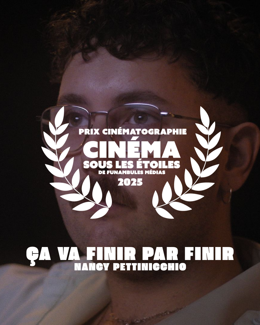 Prix Cinématographie – remis dans la catégorie Programmation québécoise au film qui se démarque par ses qualités cinématographiques, sa direction artistique et ses qualités sonores.